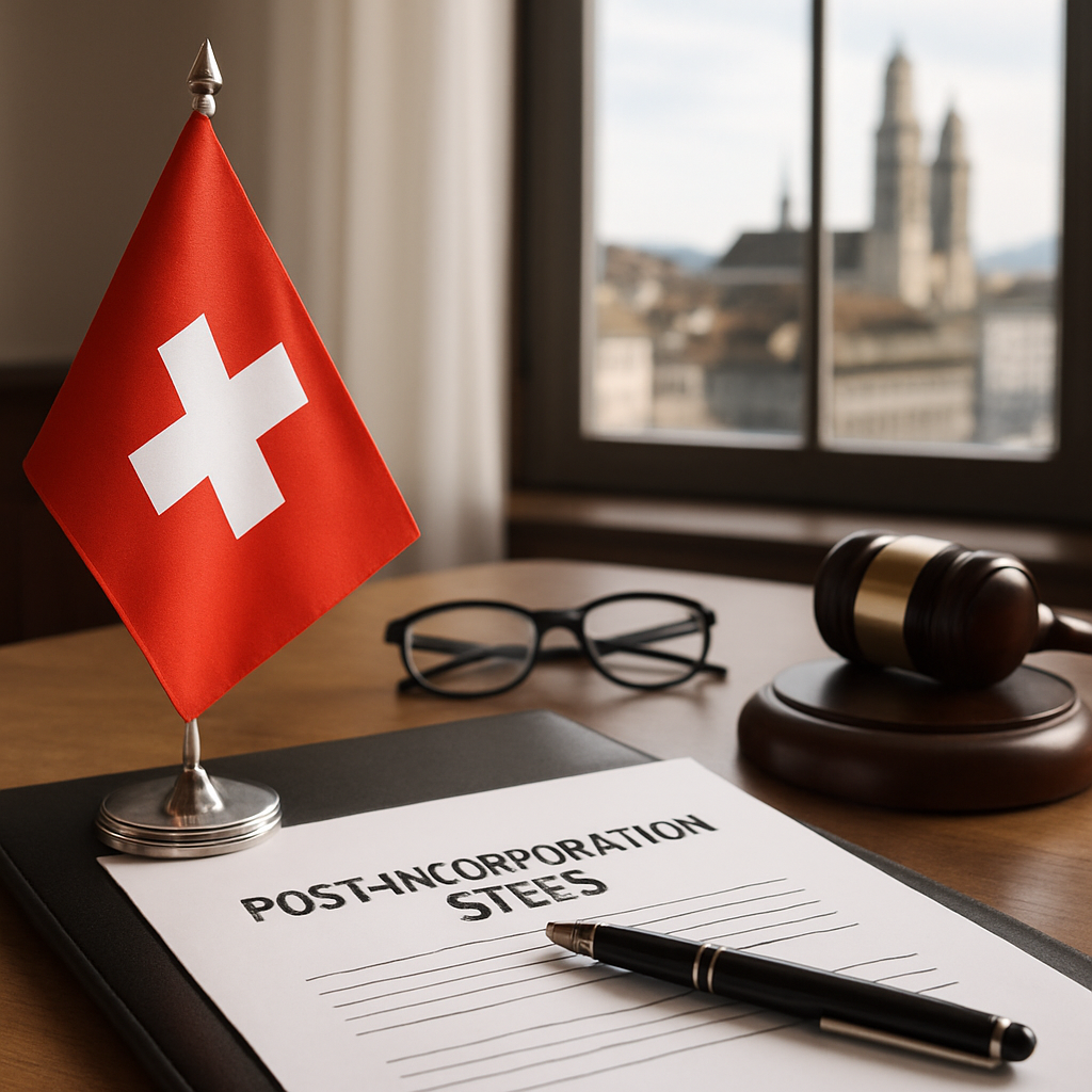 Створення компанії в Швейцарії — це важливий крок, але він не завершує всі юридичні та адміністративні вимоги. Після внесення до Торгового реєстру необхідно виконати низку обов’язкових дій, щоб забезпечити відповідність законодавству та безперешкодний запуск бізнесу.