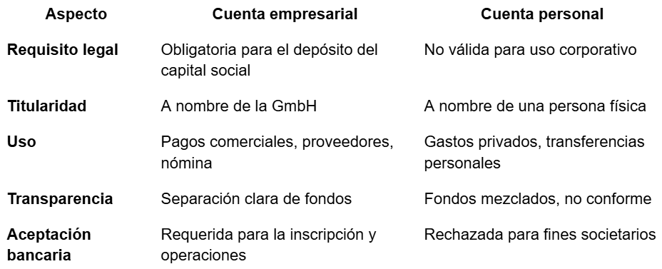 Intentar utilizar una cuenta personal para una GmbH puede ocasionar:
