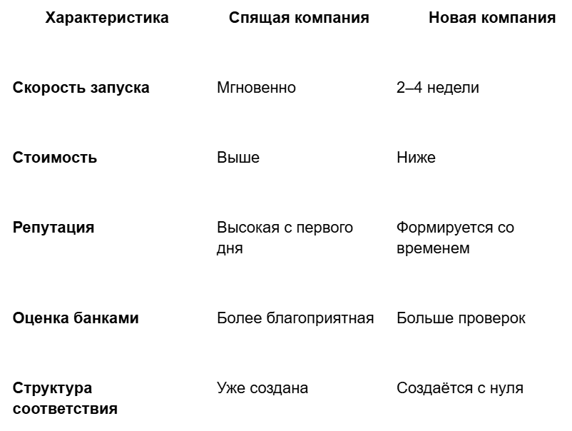 Спящая компания vs новая компания – сравнение